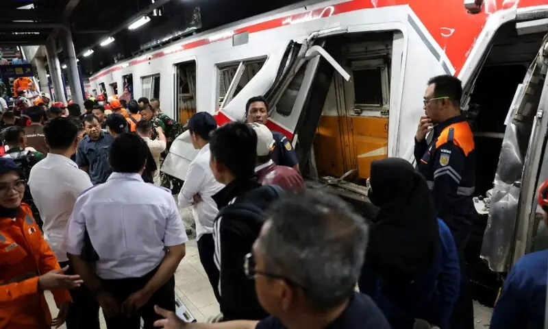 انڈونیشیا کے دارالحکومت جکارتہ سے متصل شہر بیکاسی میں پیر کی رات دو ٹرینوں کے درمیان ایک ہولناک تصادم کا واقعہ پیش آیا ہے۔ حکام کے مطابق یہ حادثہ بیکاسی ریلوے اسٹیشن پر اس وقت پیش آیا جب ایک لوکل کمیوٹر ٹرین اور ایک طویل فاصلے کی مسافر ٹرین آپس میں ٹکرا گئیں۔