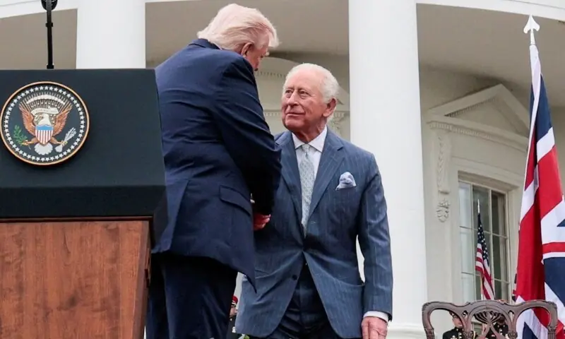 وائٹ ہاؤس میں بادشاہ چارلس کے اعزاز میں تقریب سے خطاب کرتے ہوئے امریکی صدر ٹرمپ نے کہا کہ امریکیوں کے لیے سب سے قریبی دوست برطانیہ کے سوا کوئی اور ملک نہیں ہے۔ صدر ٹرمپ نے برطانوی قوم کے اعلیٰ کردار اور مشترکہ تاریخ کا حوالہ دیتے ہوئے کہا کہ امریکا کی آزادی کی جدوجہد صدیوں پر محیط مشترکہ کوششوں کا نتیجہ تھی۔