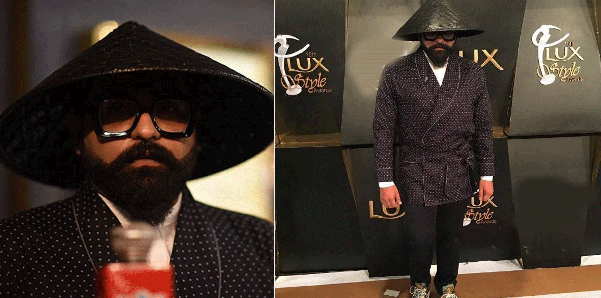 پاکستانی فیشن انڈسٹریز کے جانے مانے ڈیزائنر علی ذیشان منفرد نظر آنے کی کوشش میں کافی عجیب کپڑے پہن کر آئے ،جس میں وہ کنگ فو کا کردار لگ رہے تھے۔