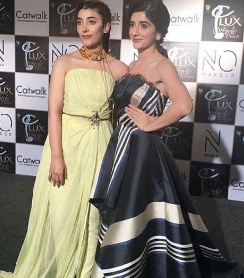 ماورا لکس اسٹائل ایوارڈ کی اس شام میں کالے رنگ کا لباس پہن کر آئی تھیں جس پر گولڈن دھاریاں بنی ہوئی تھیں لیکن یہ لباس ان پر بالکل بھی نہیں جچ رہا تھا،عروہ اور ماوراہمیشہ کافی ماڈرن لُک میں نظر آتی ہیں لیکن ان کی ڈریسنگ دیکھ کر لگ رہاتھا اس شام کیلئے انہوں نے خاص تیاری نہیں کی۔