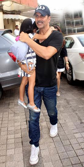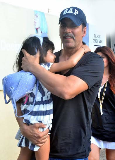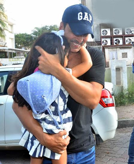 تصاویر میں اکشے نے اپنی بیٹی نتارا کو گود میں اٹھایا ہوا ہے،اور نتارا بھی والد کے گلے لگی ہوئی ہیں ،یہ منظر دیکھ کر اندازہ لگانا مشکل نہیں کہ اکشے اپنے بچوں سے بے انتہا قریب ہیں۔