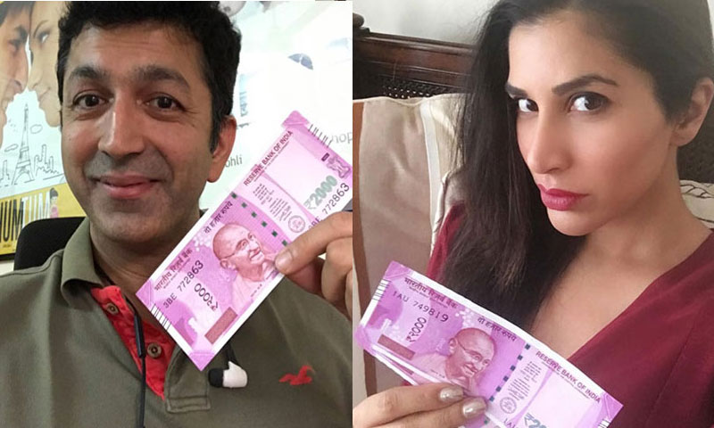 تاہم ایسے میں بھارت میں کچھ بولی وڈ اور معروف شخصیات ایسی ہیں جنہوں نے اس حوالے سے اپنے سوشل میڈیا اکاونٹ پر اس حوالے سے دلچسپ تصاویر شیئر کی ہیں۔ جن میں یہ شخصیات  نیا جاری ہونے والا دوہزار کا نوٹ پکڑے ہوئے ہیں۔
