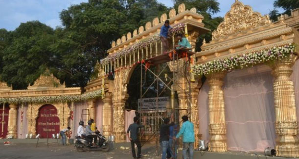 File Photoشادی کیلئے خاص طور پر بنگلور میں مندر سے مشابہہ سیٹ تیار کیا گیا اور اس جگہ کی تیاری میں کئی ماہ لگے ۔