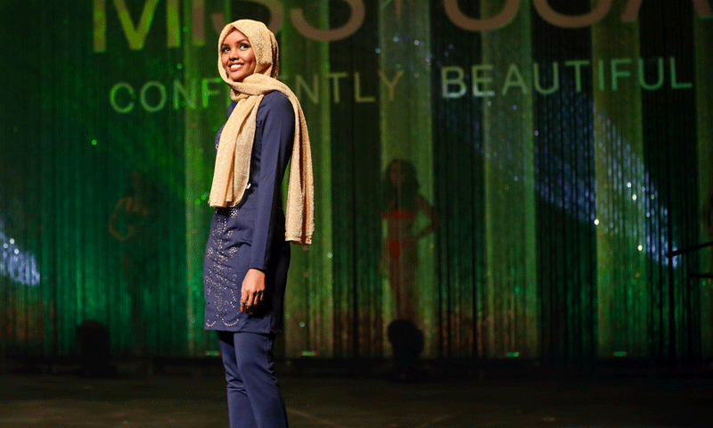 انیس سالہ حلیمہ عدن نے مقابلہ حسن میں پیراکی کے لباس کے مقابلے میں برقینی کے ساتھ شرکت کی۔