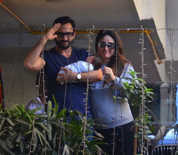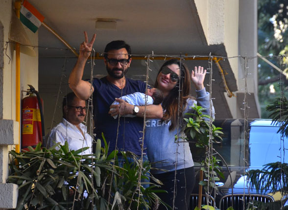 لیکن واپسی سے قبل سیف ،کرینہ اپنے چاہنے والوں کو نہیں بھولے ، اسپتال کے باہر موجود لوگوں کو چھوٹے نواب تیمور کی جھلک دکھائی۔