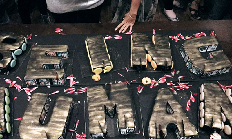 سلمان کی سالگرہ کی تصاویر میں دبنگ خان چاکلیٹ کیک کاٹتے ہوئے نظر آرہے ہیں جس پران کے فلاحی ادارے کانام "بینگ ہیومن"لکھا ہوا ہے۔
