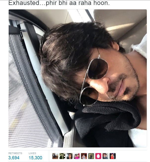 اب بگ باس کے ویک اینڈ کے وار میں کنگ خان جلوہ گر ہونگے۔ شاہ رخ خان نے اس حوالے سے ٹوئٹر پر اپنی تصویر بھی شیئر کی ہے۔ تصویر میں نظر آرہا ہے کہ شاہ رخ شدید تھکے ہوئے لیکن پھر بھی شوٹنگ کیلئے اپنی گاڑی میں سفر پر ہیں۔