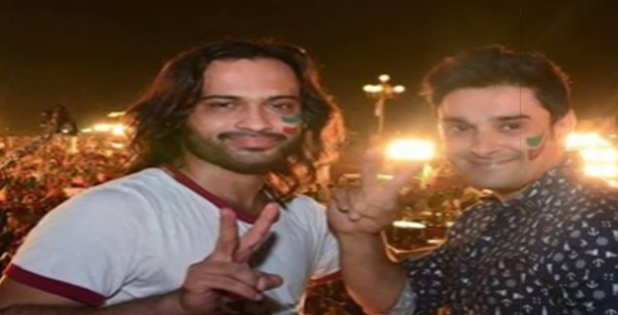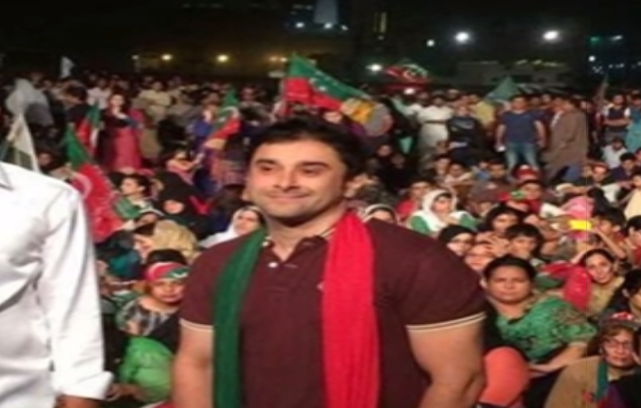 وقار ذکاء بھی ایک جلسے میں شرکت کے دوران پی ٹی آئی کا جھنڈا چہرے پر بنائے ہوئے مانی کے ساتھ موجود ہیں۔