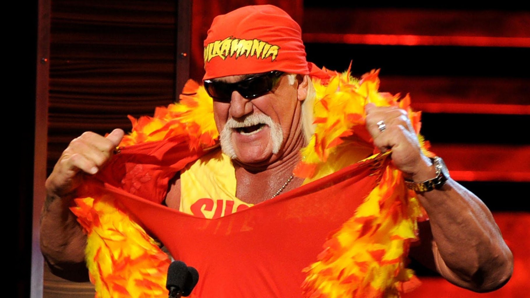 -WWEہلک ہوگن کا پیلا اور نارنجی رنگ کا کاسٹیوم اور ان کی مونچھیں ان کا ٹریڈ مارک تھا۔
